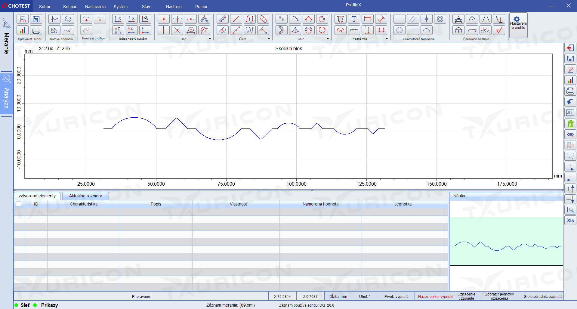 Přesné a rychlé vyhodnocení kontury povrchu.