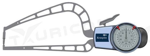 Kroeplin úchylkoměr s rameny pro vnější měření je vhodný pro měření tloušťky různých materiálů.
