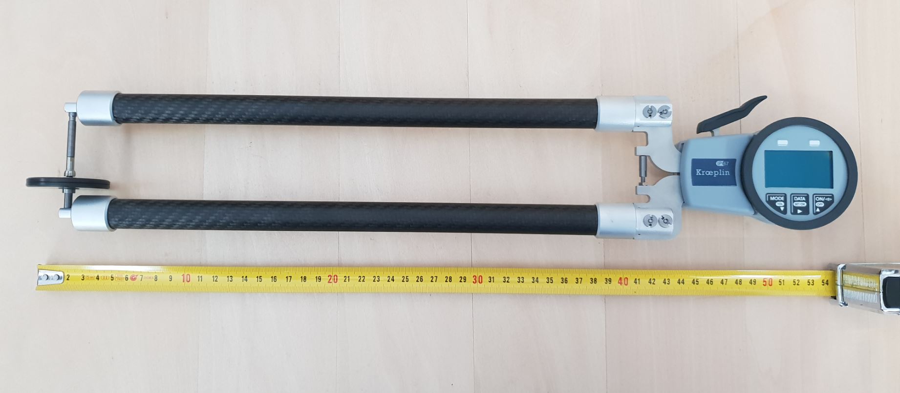 It measured the external dimensions of the Kroeplin. Long reinforced and lightweight arms for fast and accurate measurements.