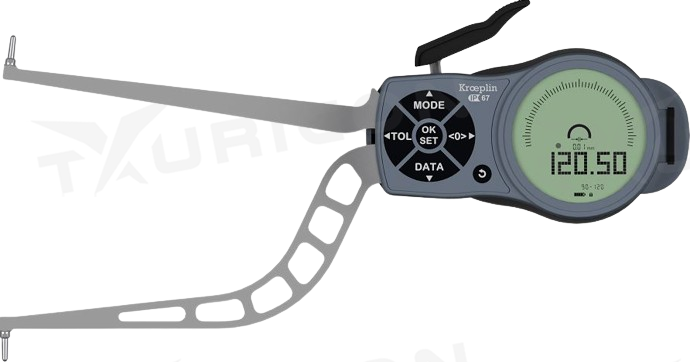 Kroeplin úchylkoměr s rameny pro vnitřní měření je vhodný pro měření otvorů.