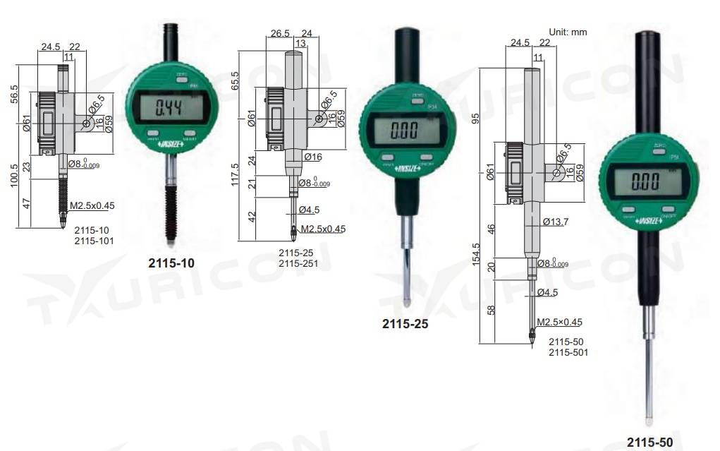 Funkce: on/off, zero, mm/inch, tolerance, změna směru odečítání, min./max./TIR, ABS/INC