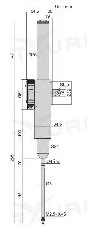 Funkce: on/off, zero, mm/inch, tolerance, změna směru čtení, max./min./TIR, ABS/INC