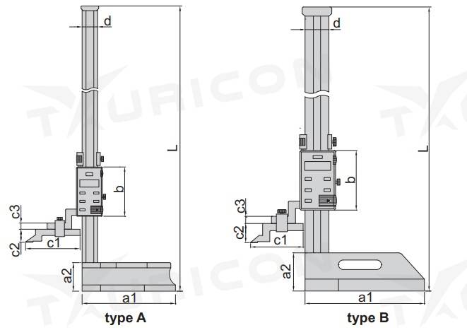 Výškoměr (digitální) slouží k měření výšky objektu, rozlišení 0,01 mm a přesnost ±0,05 mm. Funkce ABS/INC, TOL měření, výstup dat.